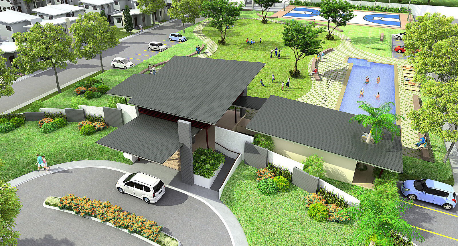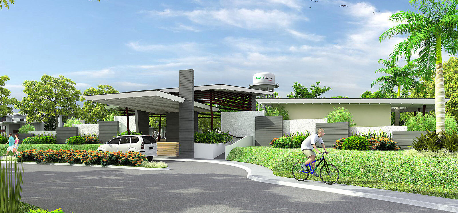 A modern contemporary – inspired clubhouse and gatehouse project of Amaia Land in Calamba, Laguna with swimming pool, parks and playground.